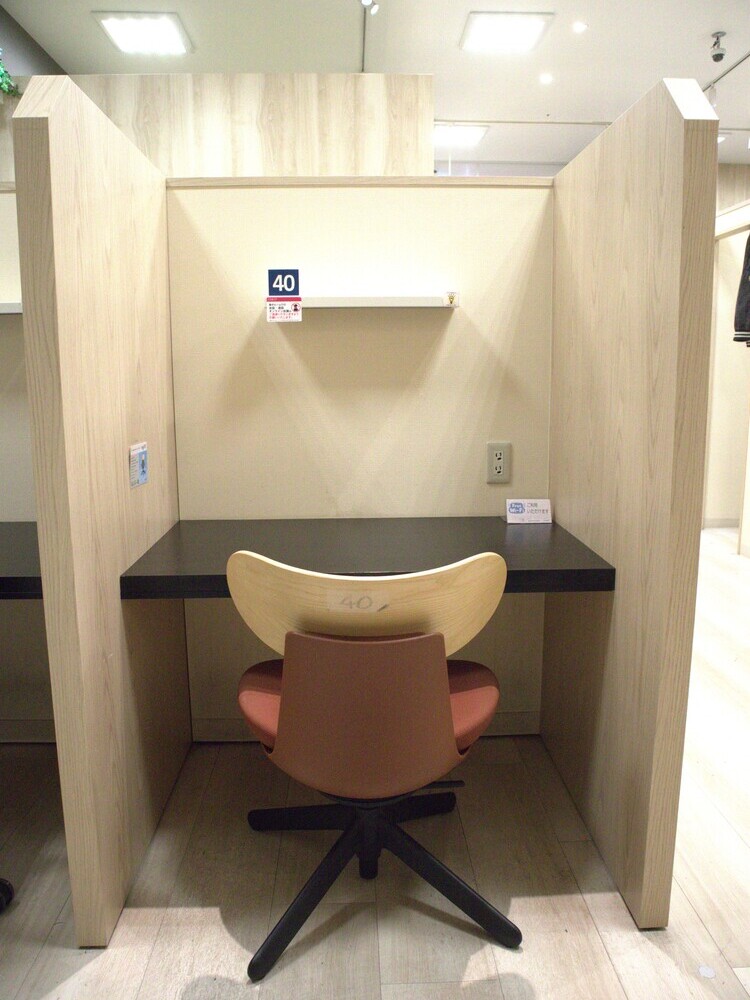 こちらが指定の席です。背の高い壁に囲まれているため、仕事に集中できそうです。