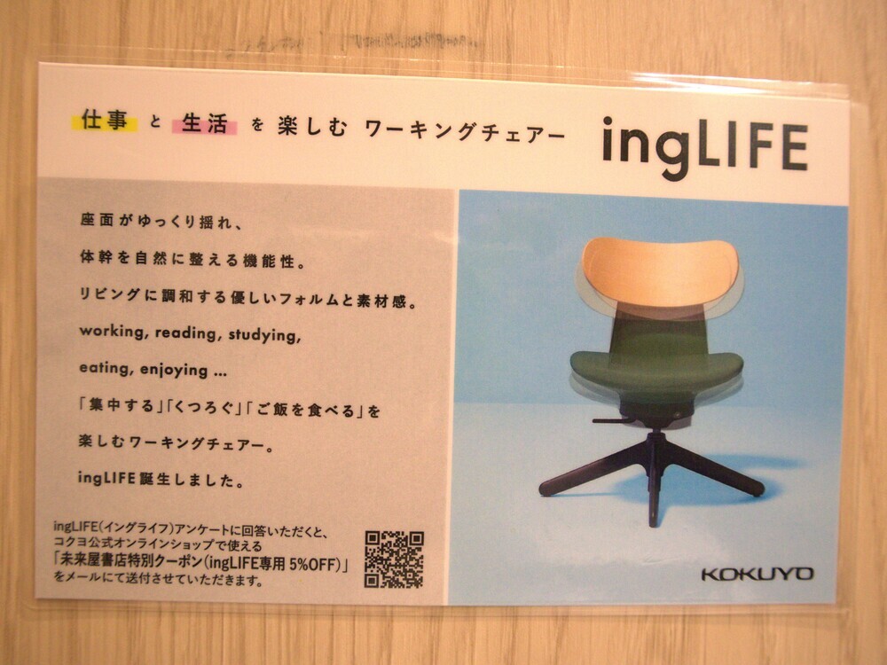 ちなみに椅子は2種類あり、私が使用したのは「ingLIFE」というタイプの椅子(キャスターなし)です。もう一方の椅子はキャスター付でした。