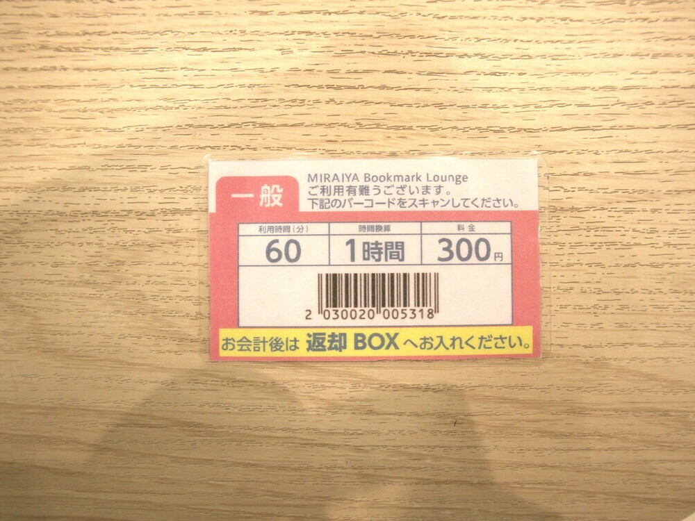 きりの良いところまで仕事を続けた後、片づけをして退店。カウンターでカードホルダーを返却、料金記載のバーコードを受け取り、セルフレジにて清算して終了です。