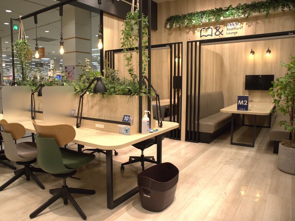 仕事が捗り、勉強・読書などさまざまな用途で利用可能なMIRAIYA Bookmark Lounge 八千代緑が丘店。