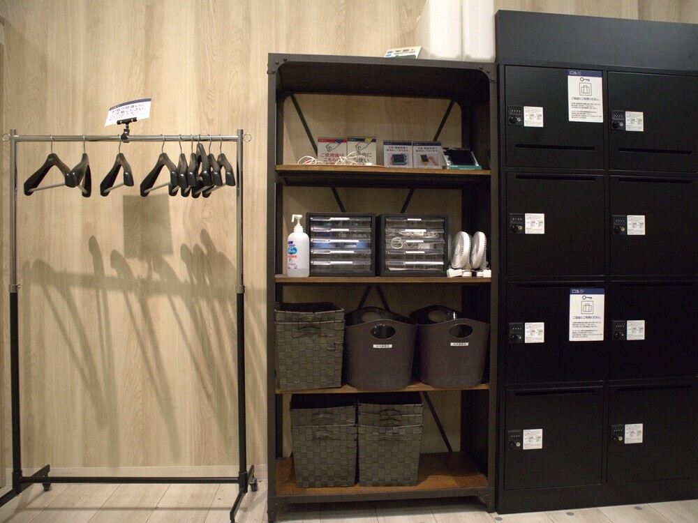 ハンガーラック、荷物かご、鍵付きのロッカーもあります。