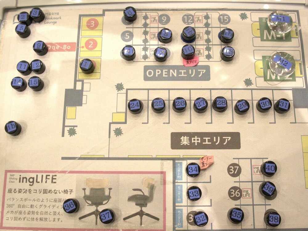 まずはカウンターにて受付し、事前に予約したエリアの中から空いている席を選びます。