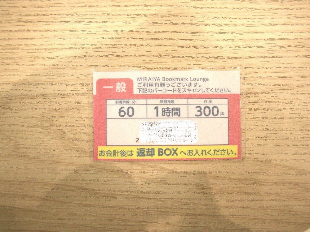 きりの良いところまで仕事を続けた後、片づけをして退店。カウンターでカードホルダーを返却、料金記載のバーコードを受け取り、セルフレジにて清算して終了です。