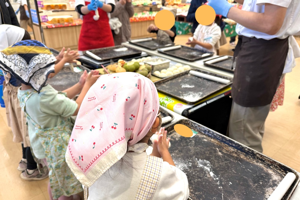 完成まで約1時間!集中してパンを作る子どもたち