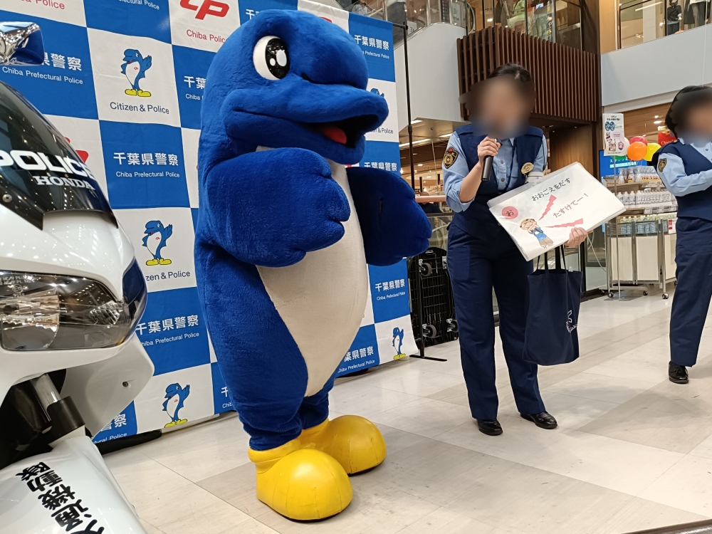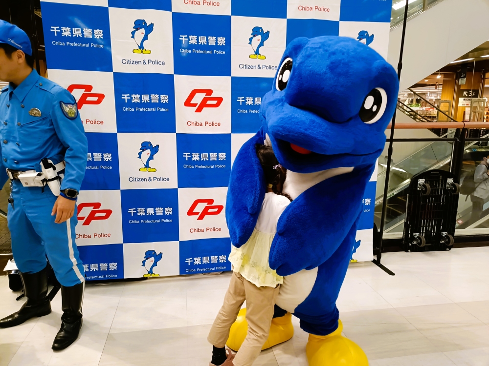 到着すると、さっそく千葉県警察のマスコットキャラクター、シーポックくんに会えました。