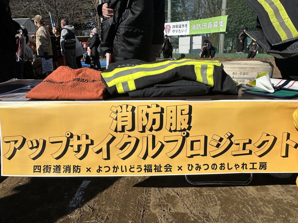 消防服リサイクルプロジェクトのブースでは使えなくなった消防服などの新たな活用法を紹介していました。