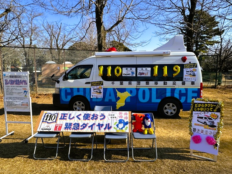 警察のブースもあり、緊急ダイヤルの適正利用を呼びかける移動交番車もありました。