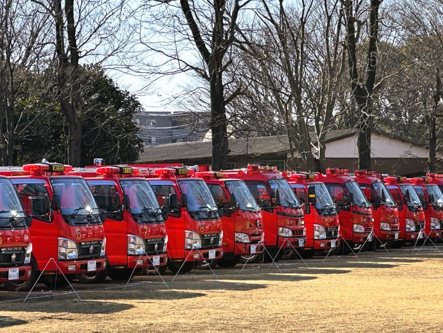 消防車両は消防団が使用する小型動力ポンプ付搭載車や実際の現場で活躍する救助工作車など様々です。