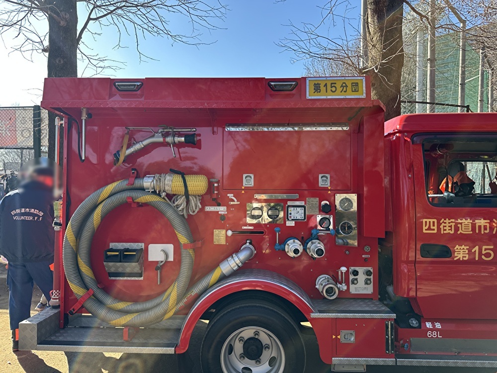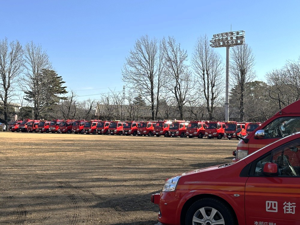 消防団の車両は野球場を囲むように停車していたので、より間近で見ることができます。