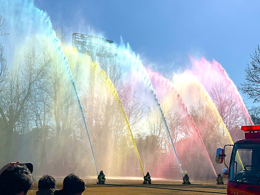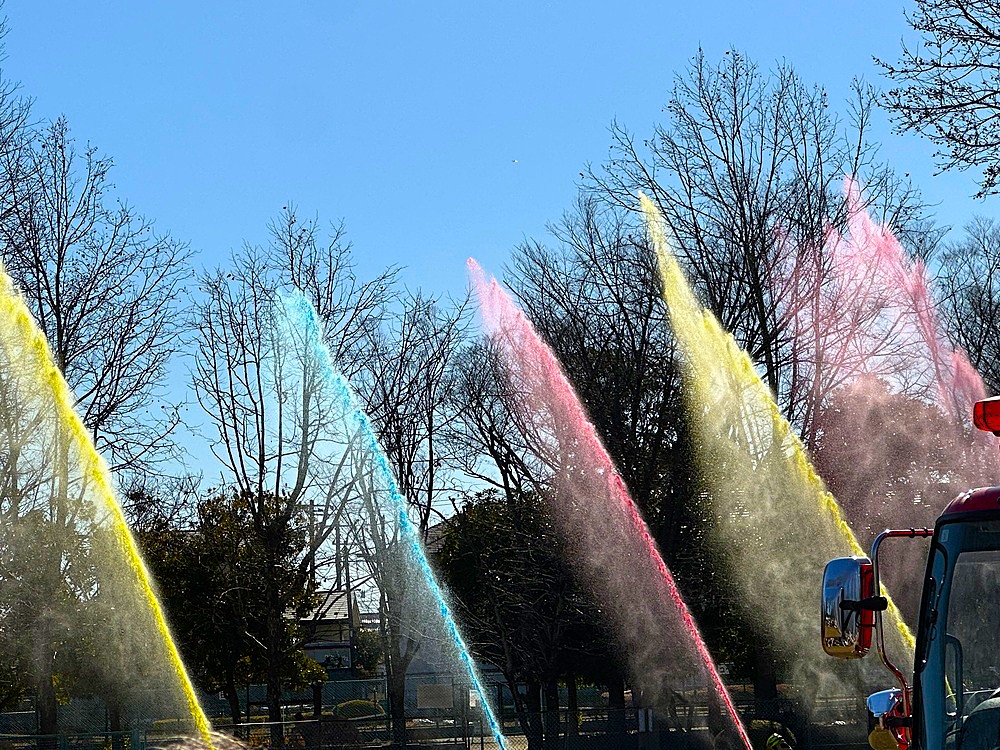 色鮮やかな放水で願いよ届け!