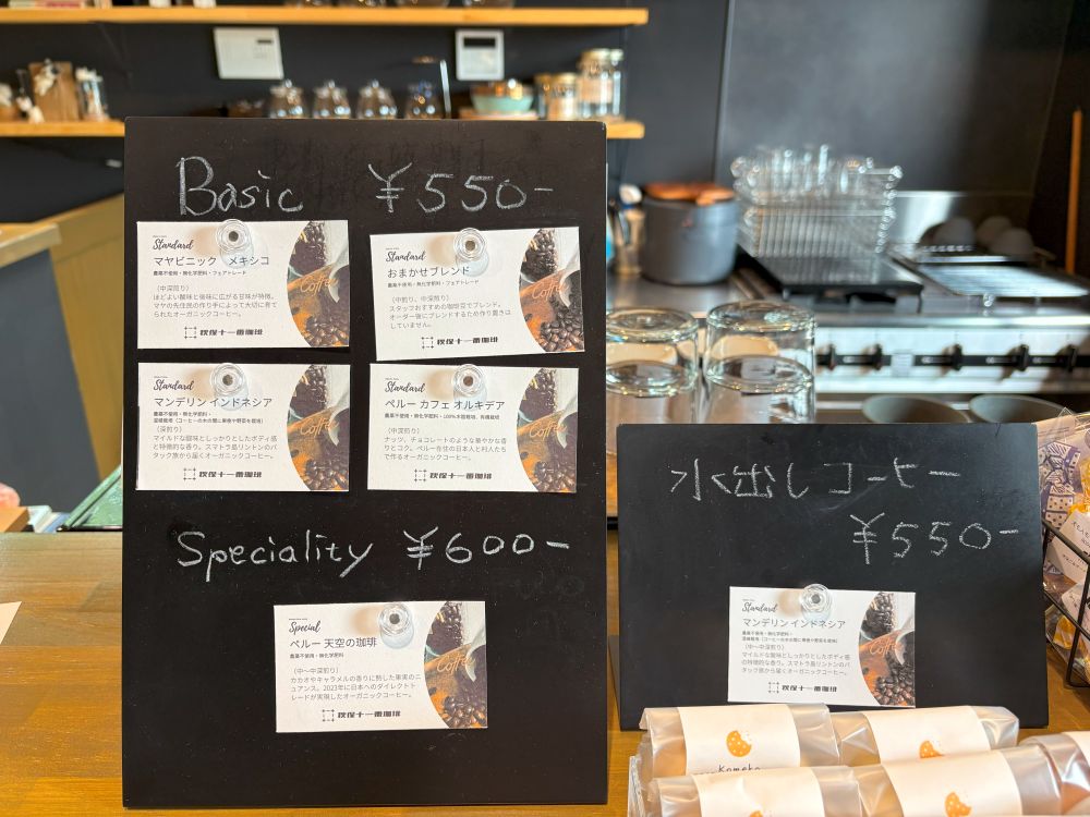 農薬不使用・無科学肥料のコーヒー豆を使用し、注文ごとにハンドドリップで一杯ずつ丁寧に淹れられています。オーガニックコーヒーを探し求めた結果、訪れるお客さんもいるのだそう。
