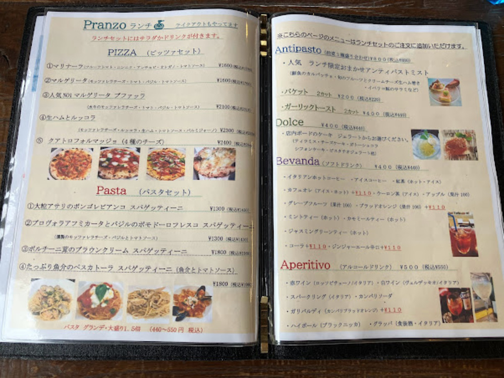 メニュー右ページ、前菜盛り合わせやデザートも気になります。