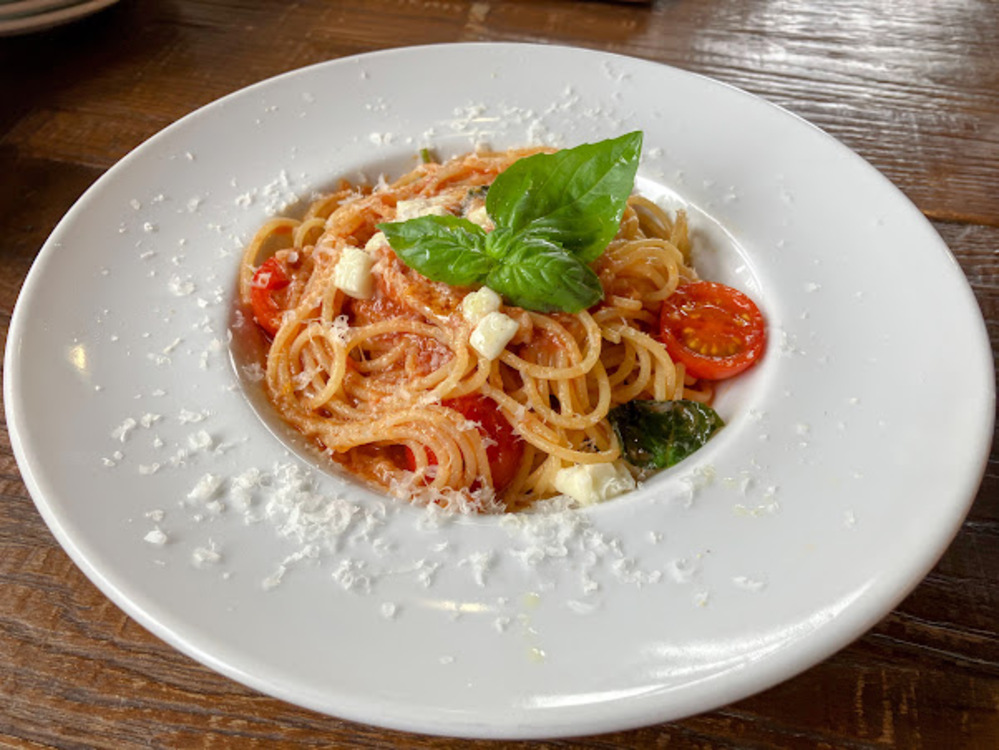 パスタランチから、「プロヴォラアフミカータとバジルとポモドーロフレスコスパゲッティーニ」を注文しました。
