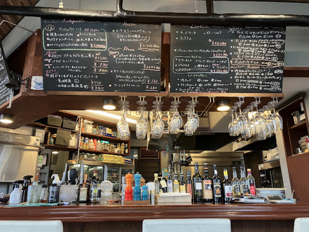 オープンキッチン上の黒板には、アラカルトメニューがずらり。