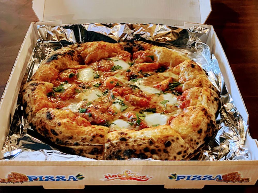 薪を使って高温で焼くことで、外はカリッと中はジューシー、風味豊かなピザが焼き上がります。