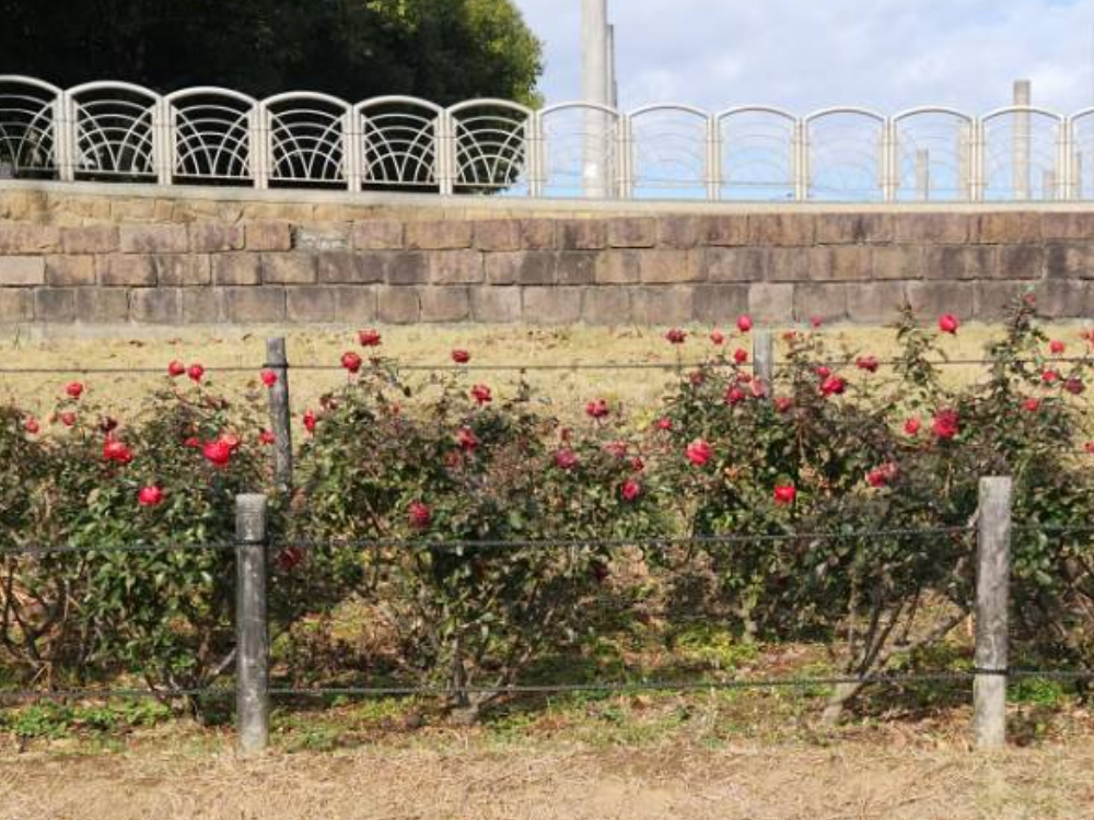 ちょうど壁滝の一段下にはバラの生垣があり、この時期でもバラを見ることができました。