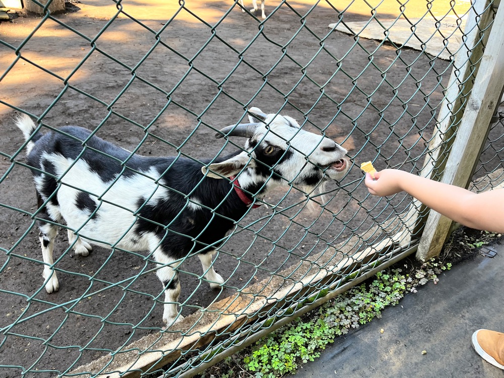 4歳の娘は、自分があげたえさを食べてくれるヤギさんにメロメロ。