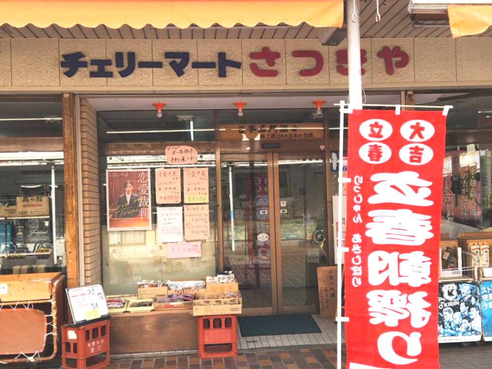 その一番最初に見えるお店の一角が、今回買い物に向かった「酒商 さつきや酒店」(以下、さつきや)です。