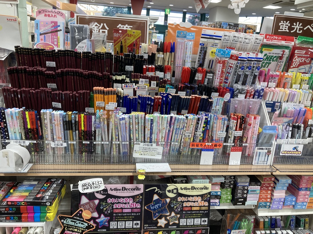 鉛筆などのペン類だけでもこの品揃え!種類やデザインが豊富です。