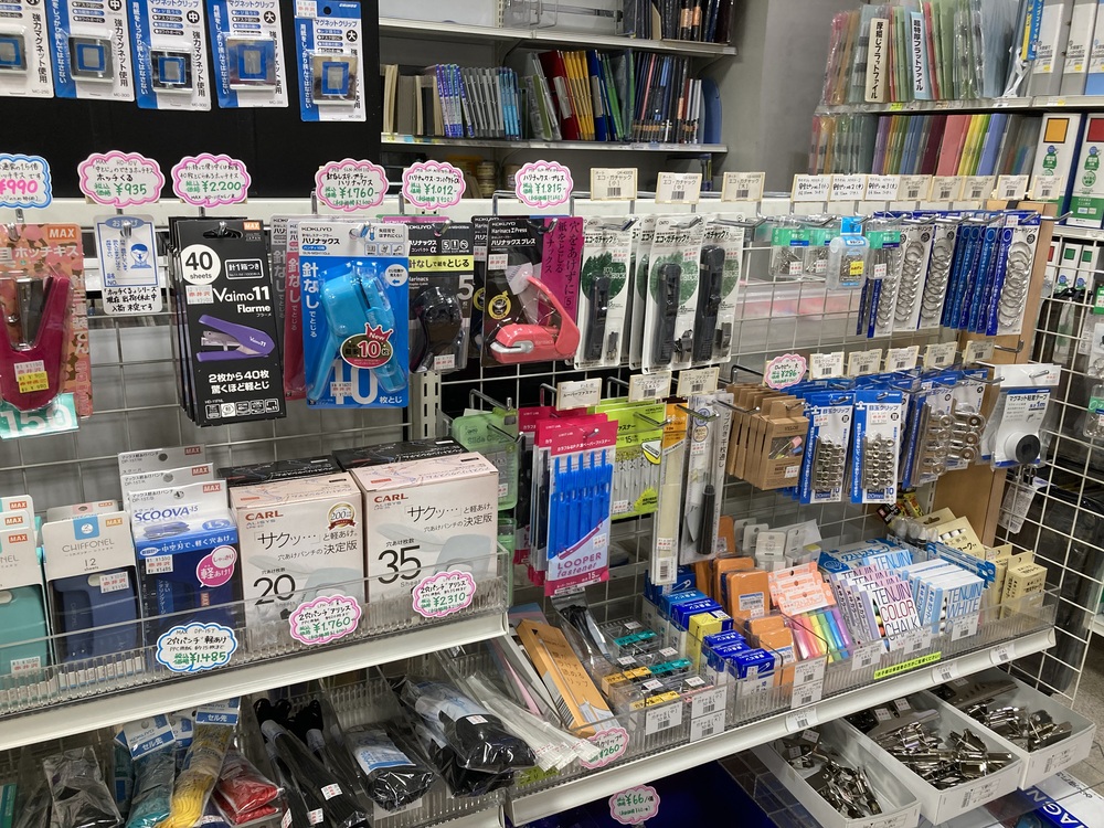 オフィスで重宝するホッチキスの“針なしタイプ”も売っていました。