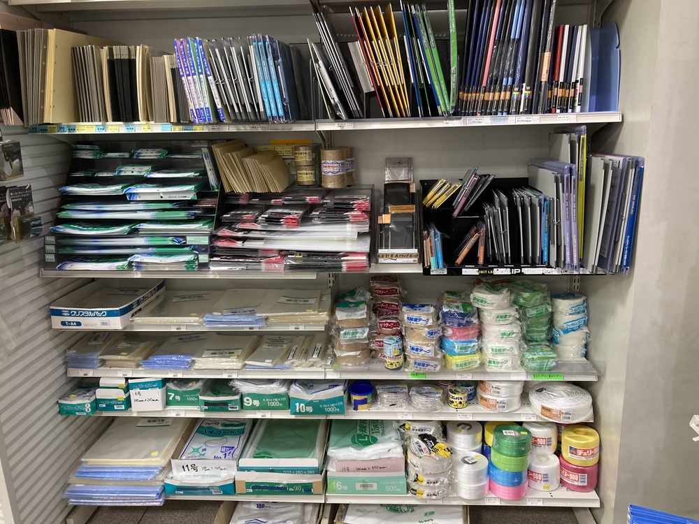 バインダーリングやビニールテープなど、あると助かる細かな物も販売。まさに痒い所に手が届く品揃えです。