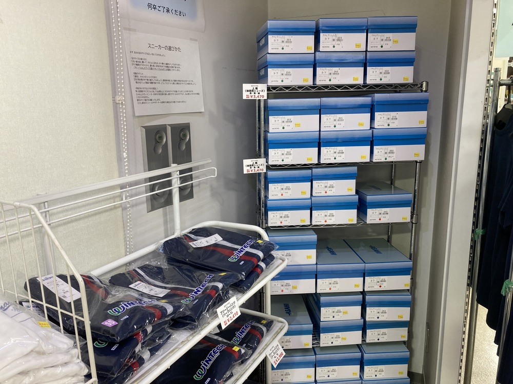 2階部分は、長町中学校と長町小学校の指定体育着や上履き(長町中学校のみ上履きの販売)販売店にもなっています。