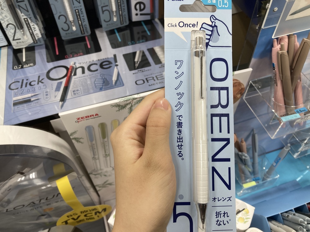 オレンズはその名前の通り、芯の折れないシャープペンシル。通常のシャープペンシルだと、数回ノックして芯を出してから書き始めるのに対し、オレンズは1回ノックするだけですぐに書き始められるんです。